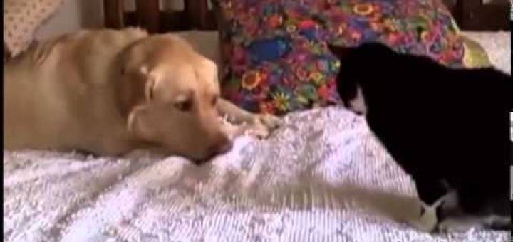 These dogs just want to be friends, but some of the cats are getting annoyed.